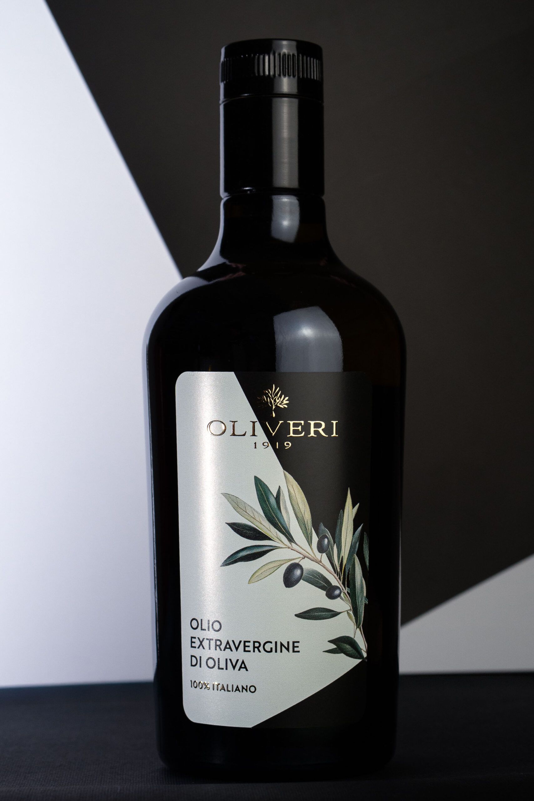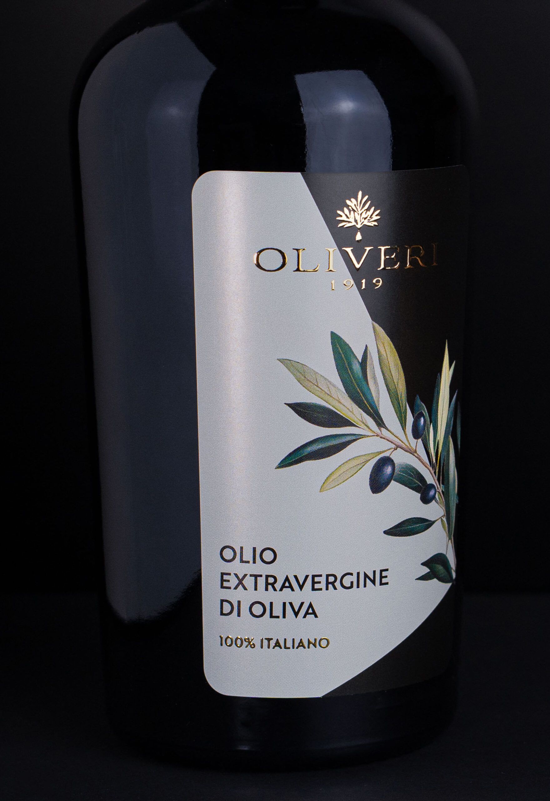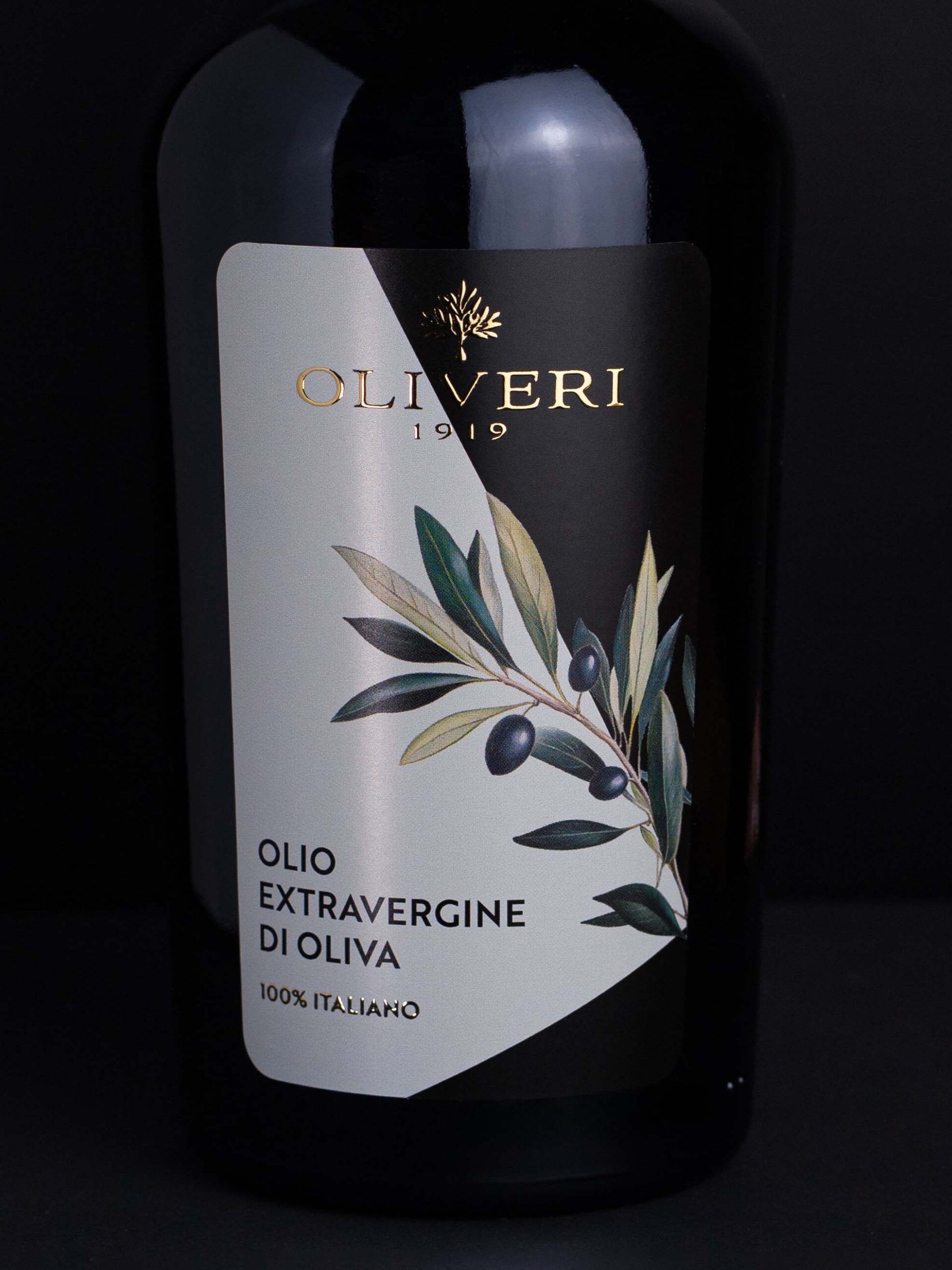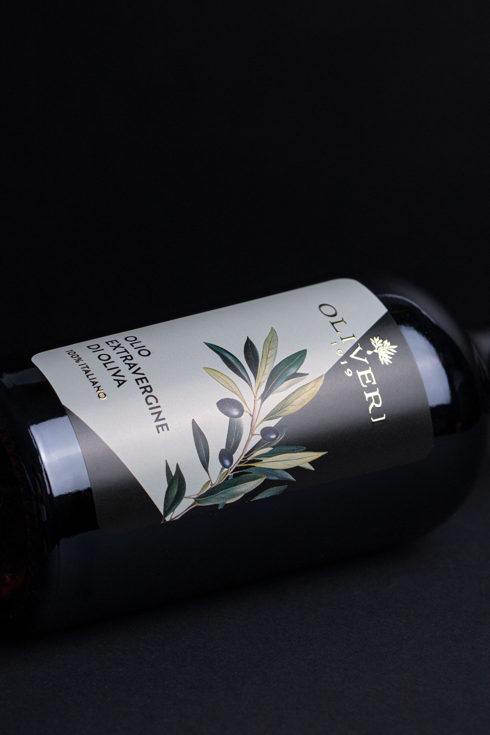 Un’etichetta che interpreta la tradizione con uno sguardo contemporaneo. Il nome OLIVERI, tagliato diagonalmente dalla geometria dell’etichetta, dà origine a un duplice significato: OLI VERI. Un gioco visivo e semantico che rafforza l’idea di autenticità, verità e qualità.
