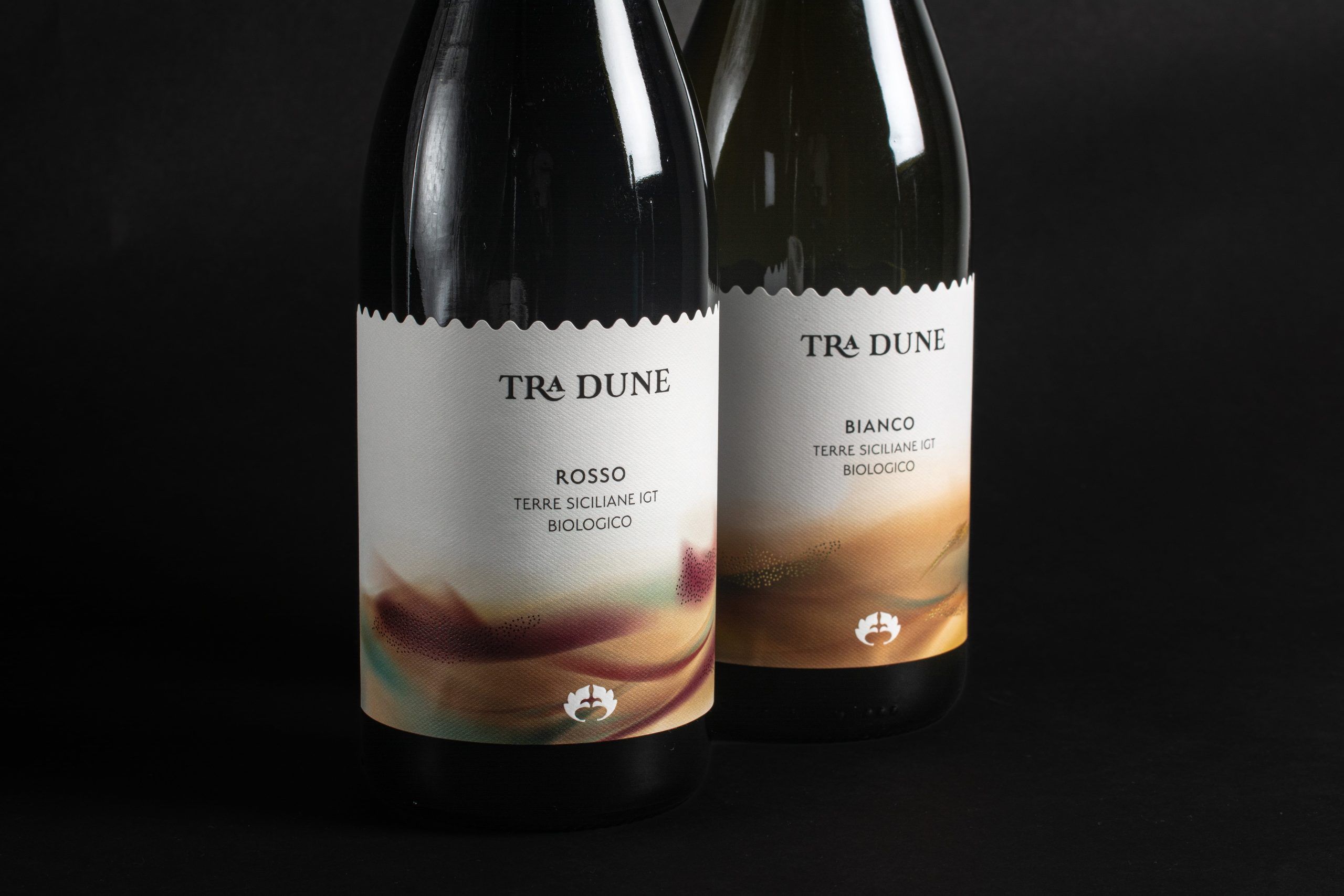 Le due etichette, una per un blend bianco e una per il rosso, evocano la forza del Mediterraneo e la formazione del suo waterfront, dove la macchia mediterranea ed i venti di ponente modellano la morfologia della sabbia, trasformandola in dune preziose.